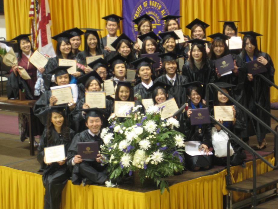 式の最後に日本人の卒業生が集合して