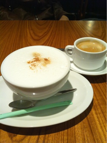 で、手前が私の注文したカプチーノ。