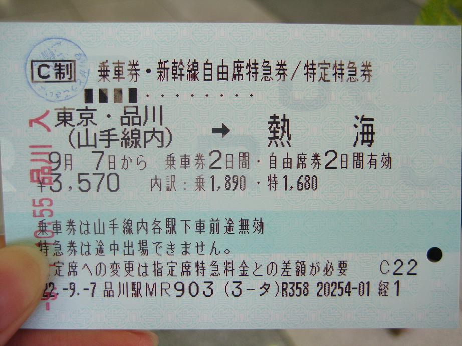 熱海行きの新幹線のチケットを